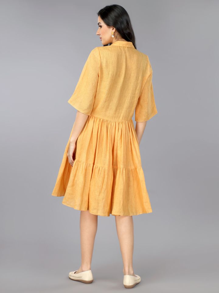 Crafted from breathable, premium-quality pure linen, this dress is lightweight and luxurious, making it ideal for all-day wear. Its soft apricot hue brightens up any setting, from casual outings to semi-formal events.