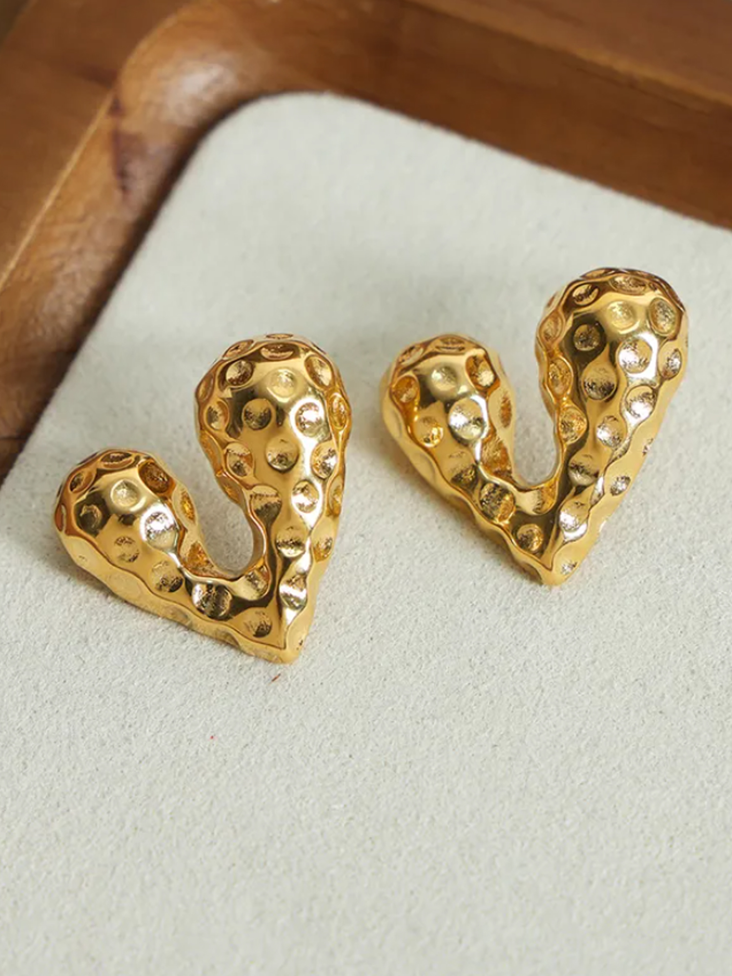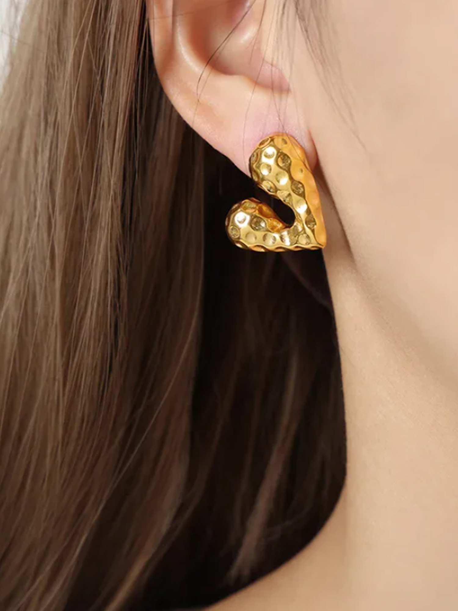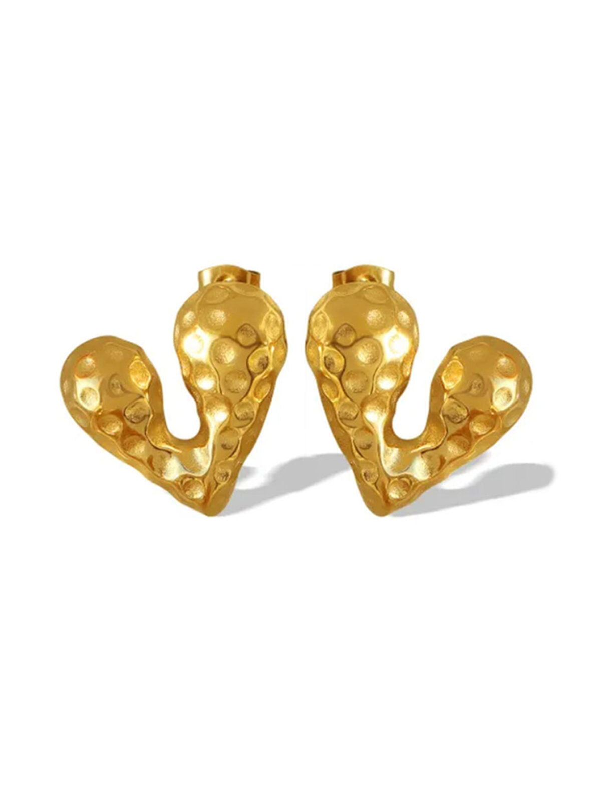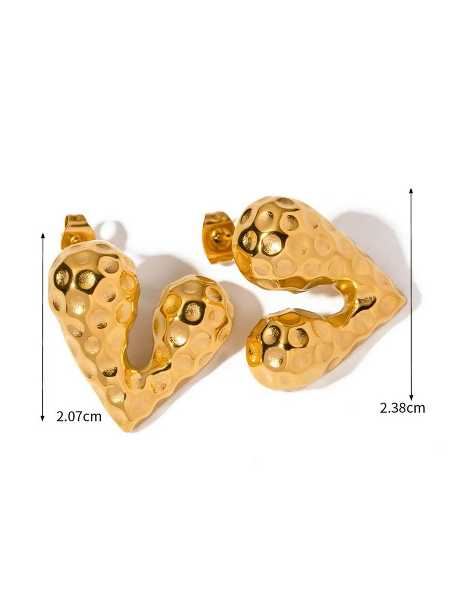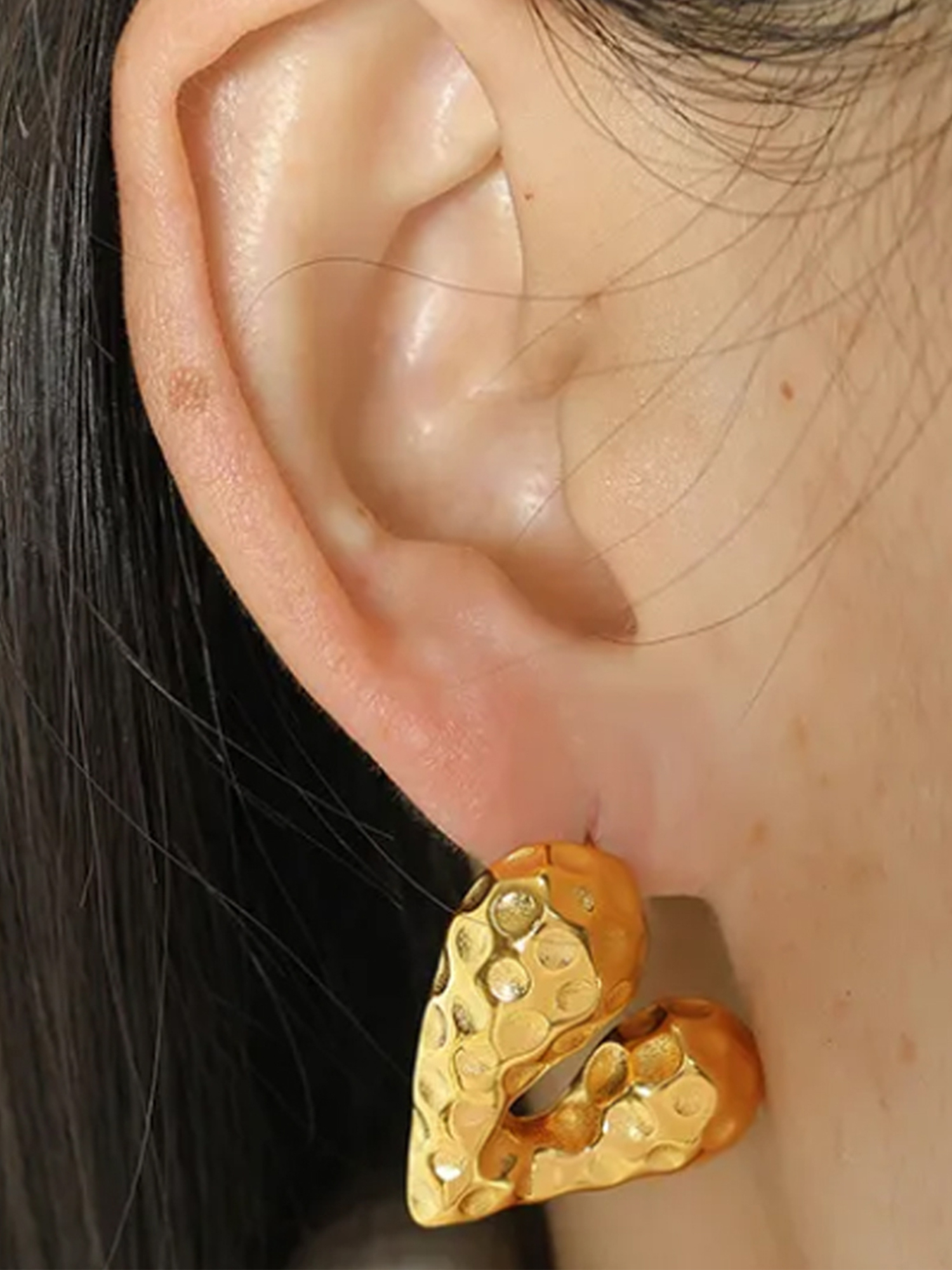 Featuring a pair of 18k gold plated heart earrings, set in stainless steel. Perfect wear for casual outings, resort wear, festive occasions or cocktail parties.