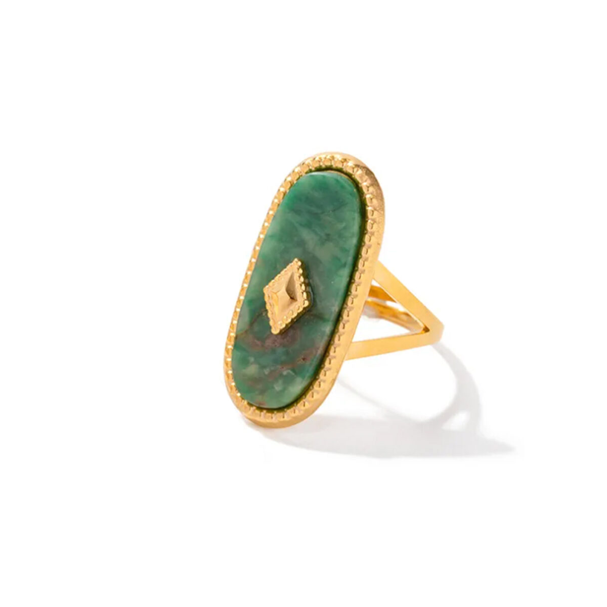 Featuring a 18k gold plated natural stone ring, set in stainless steel. Perfect for casual outings or cocktail parties.