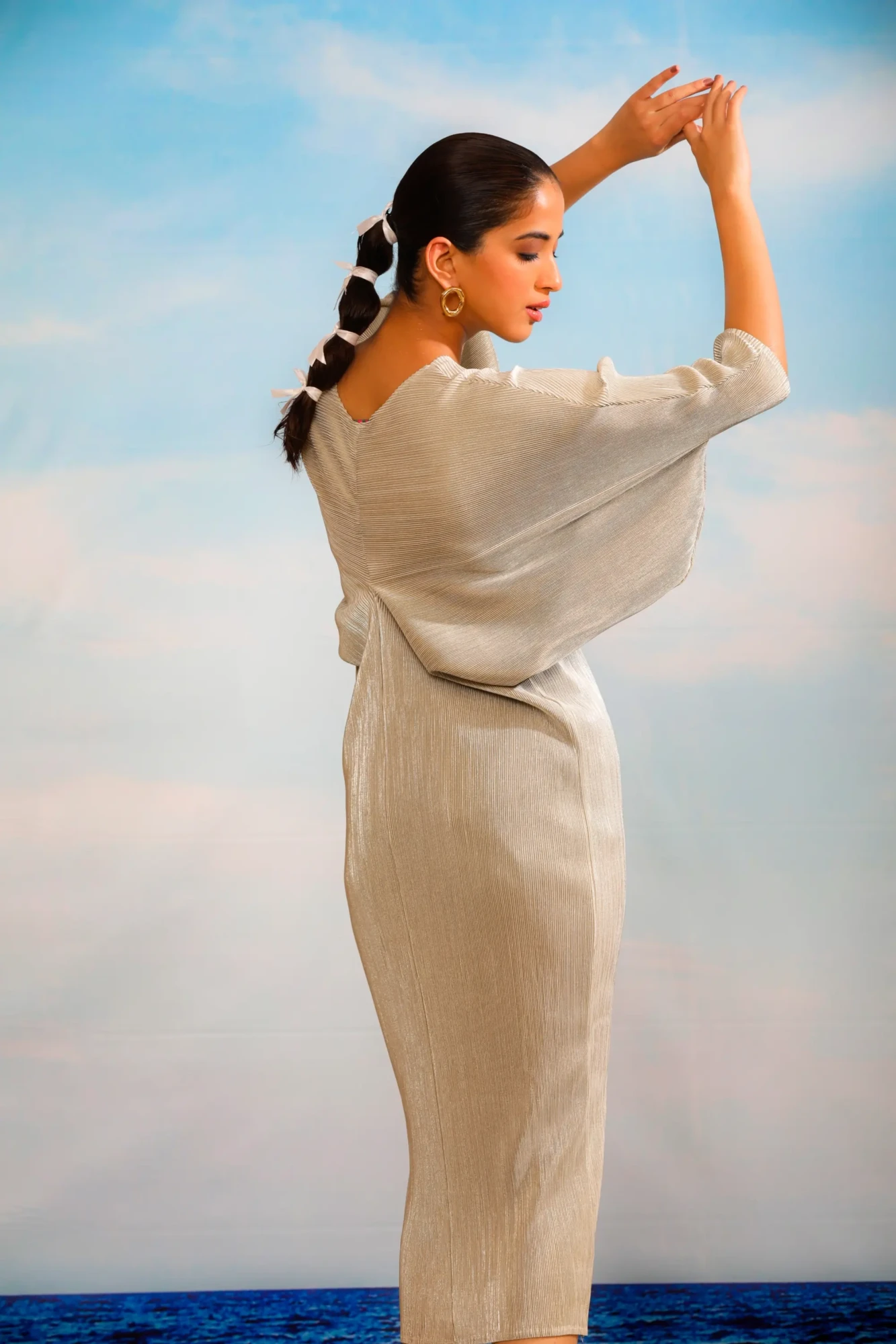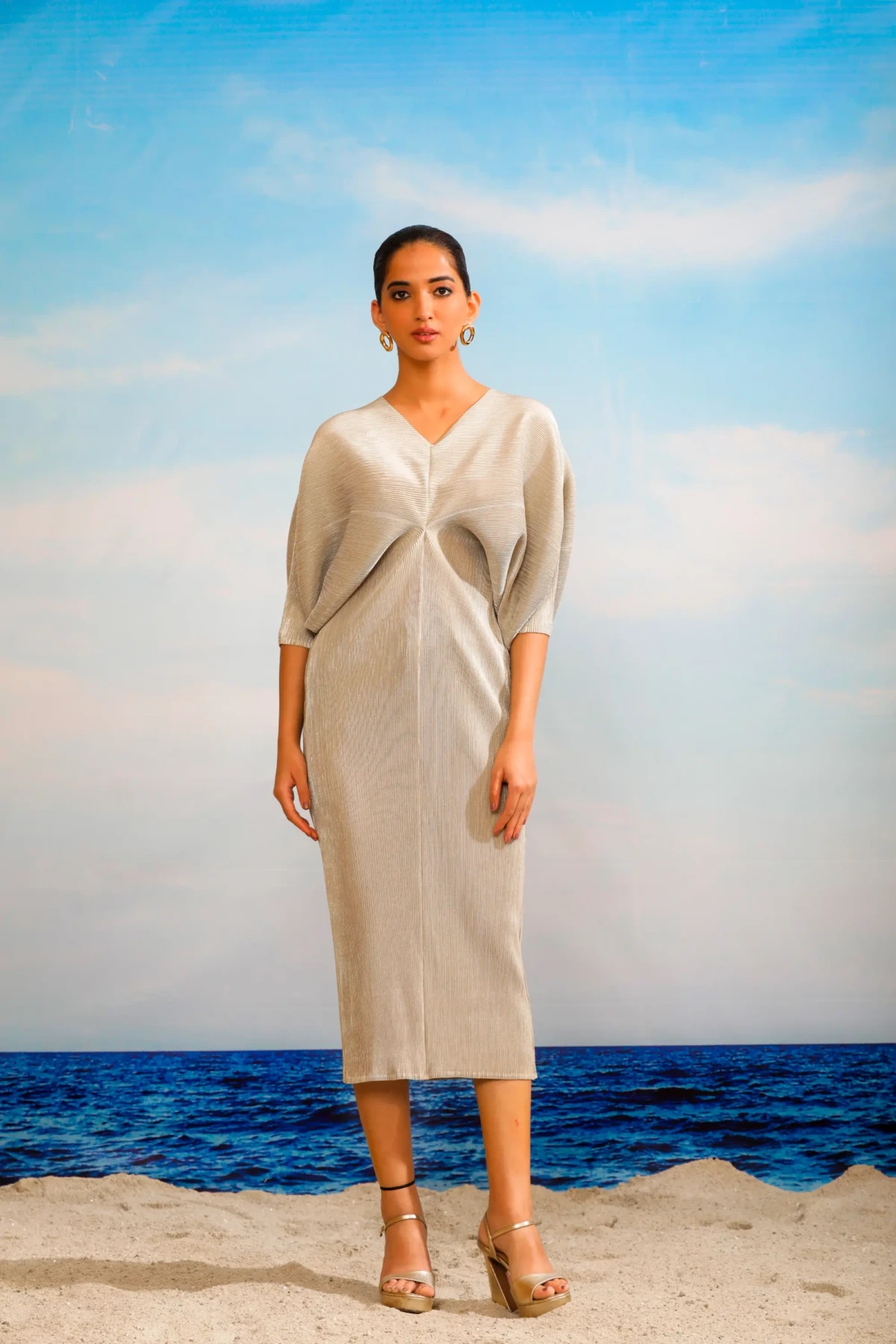 Kiara Batwing Metallic Dress – Silver Ash