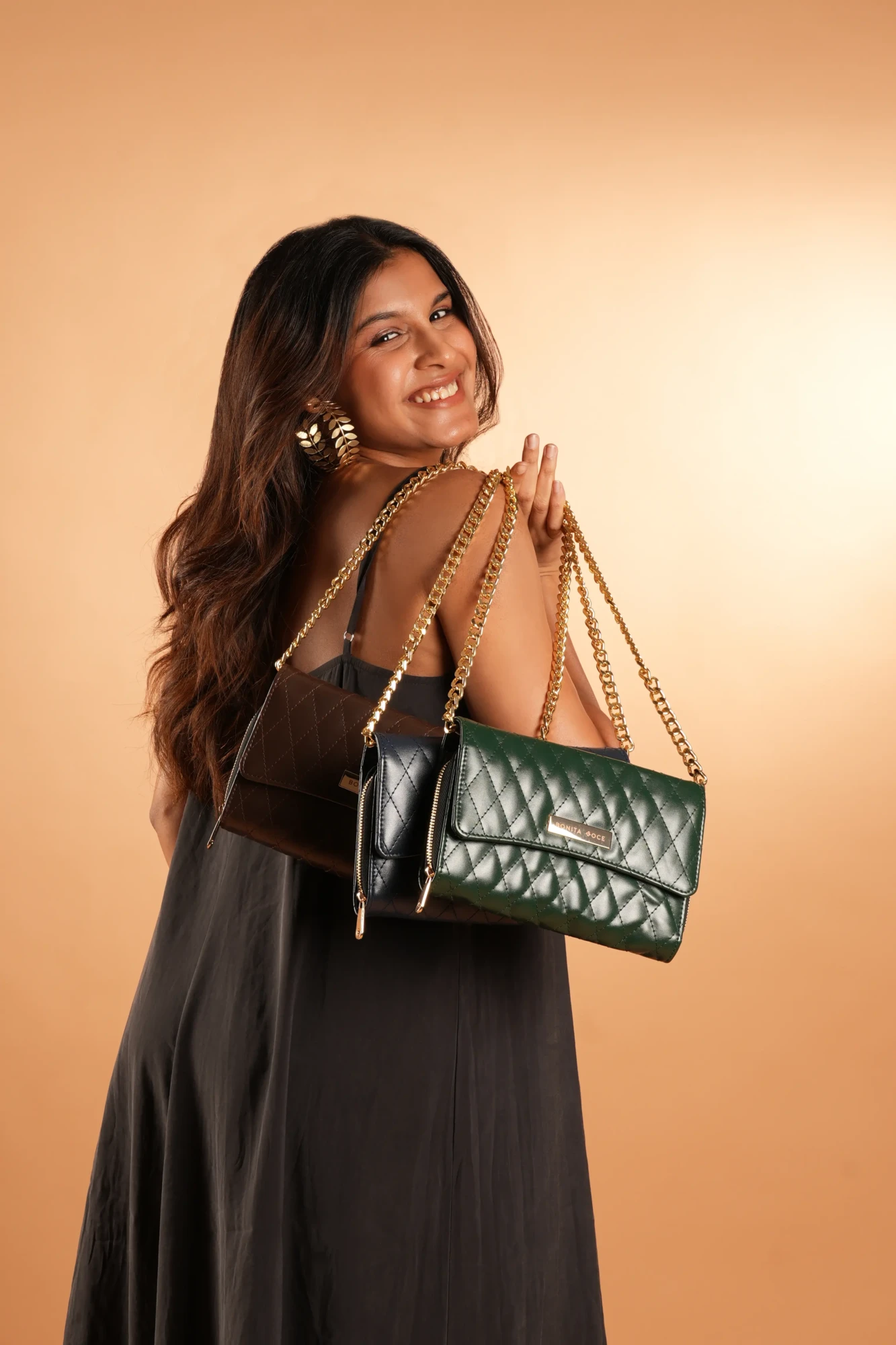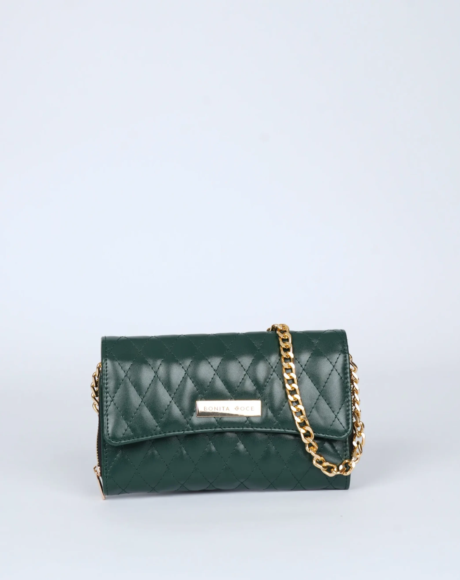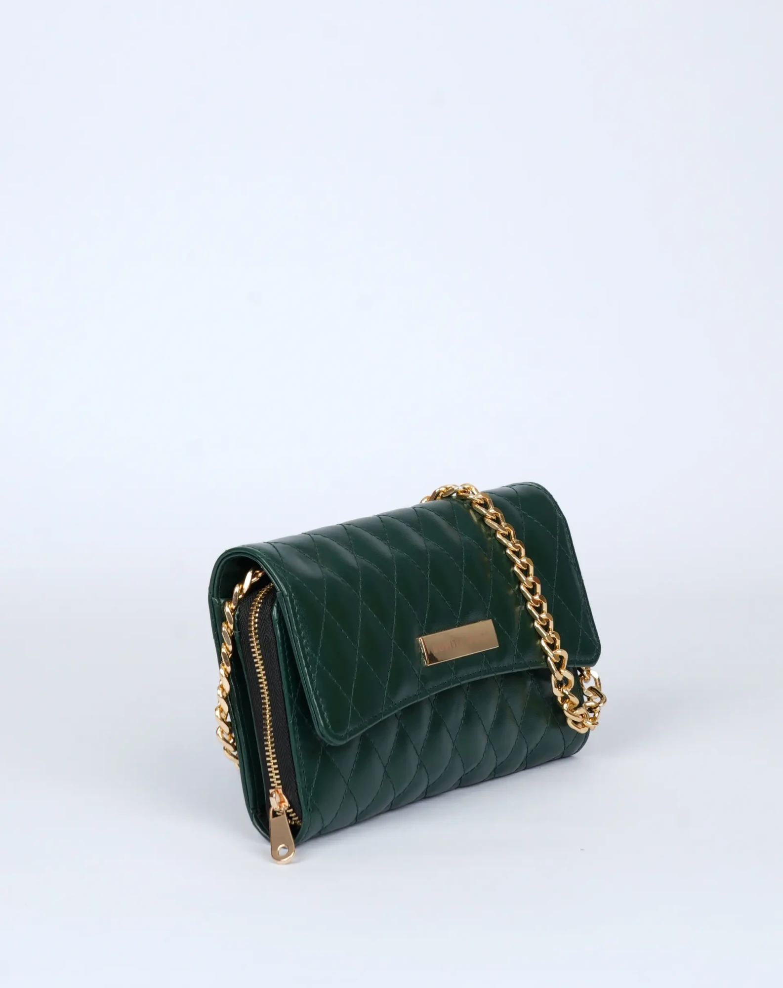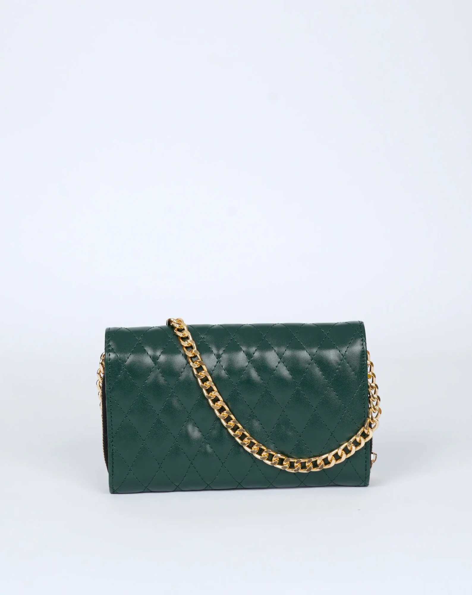 Compact, functional and built for daily use. This classic flap wallet is designed to keep your essentials organized with multiple card slots, a cash compartment, and a secure closure. Crafted from durable materials with a clean, minimal look, it can be held as a clutch or hung over the shoulder by a metal chain strap – perfect for those who value both style and simplicity.