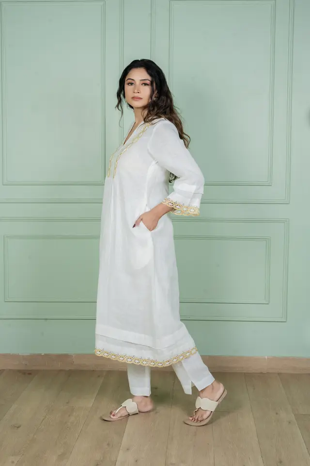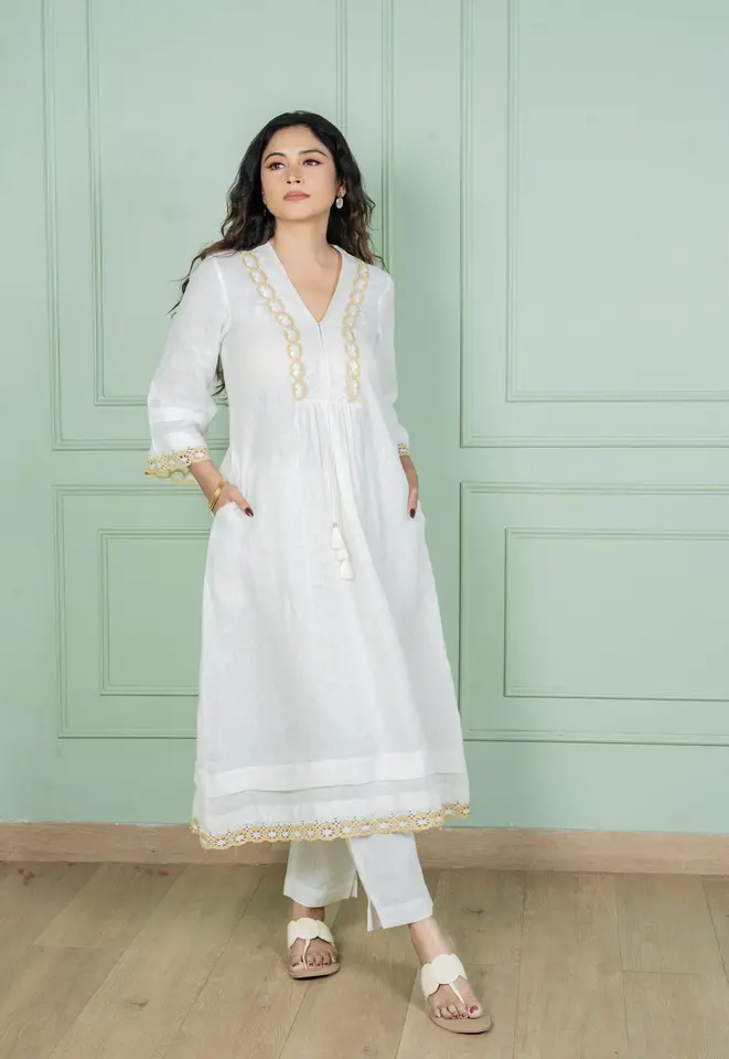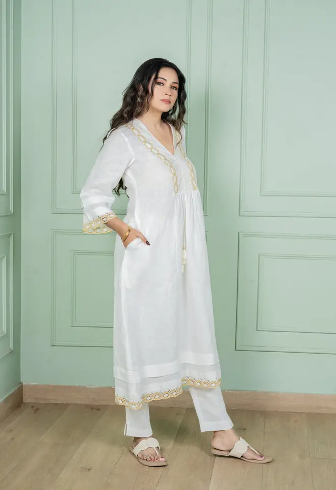 Embody timeless grace with our Lily Linen Kurta Set, a true symbol of purity and elegance. Inspired by the delicate charm of white lilies, this ensemble radiates sophistication, making it a versatile choice for both festive gatherings and refined occasions.