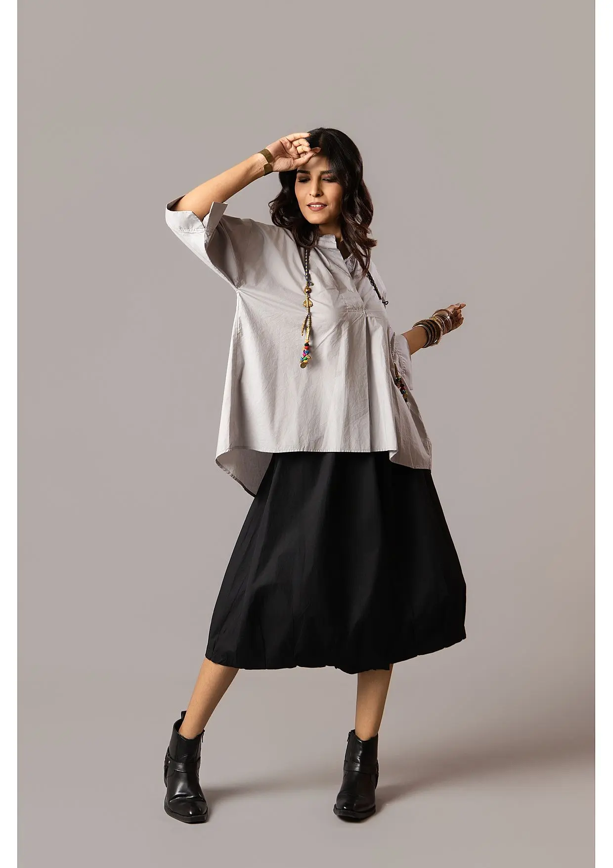 100% Cotton Poplin – Premium Cotton. Anti fit high-low style top with tape detail on hem.