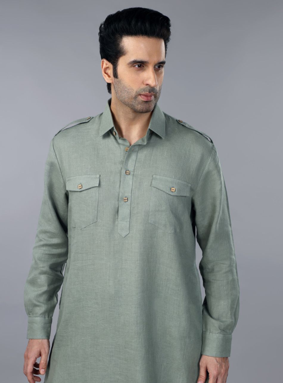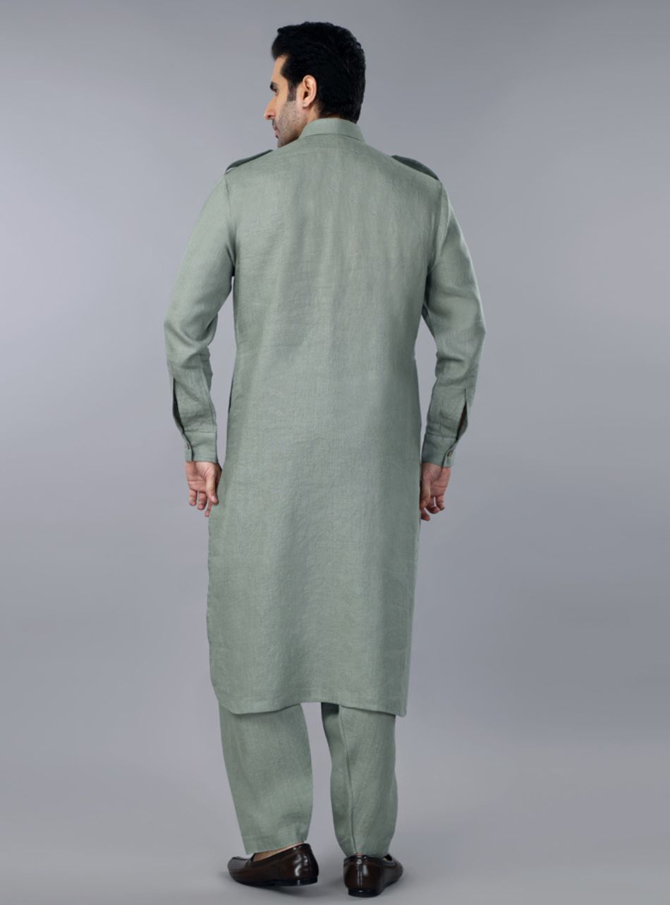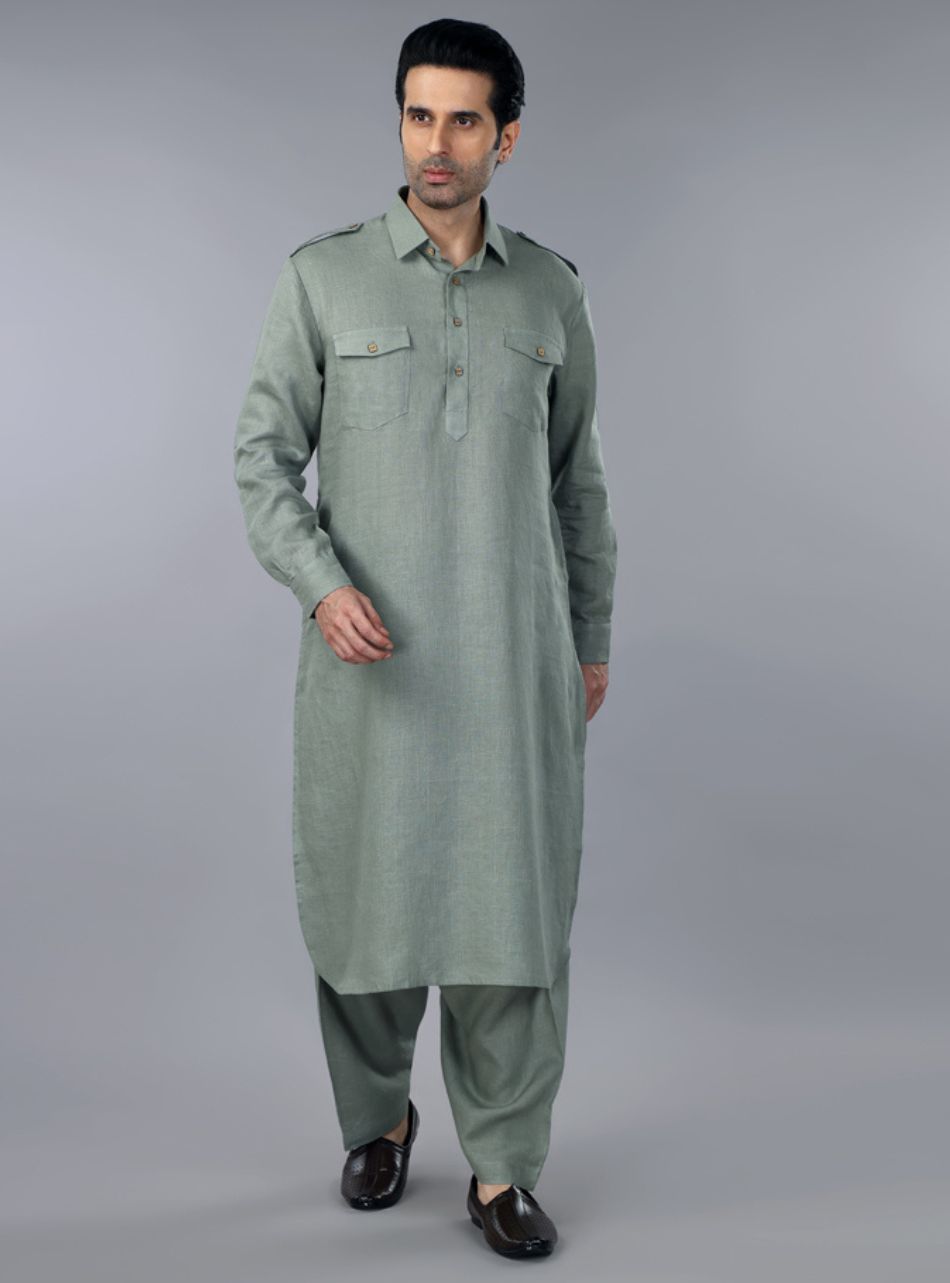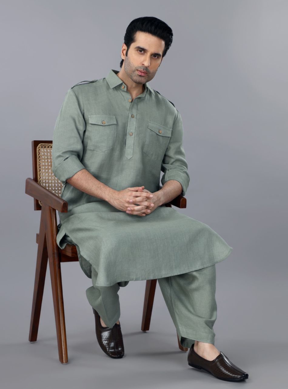 Sage Green Linen Pathani Suit
