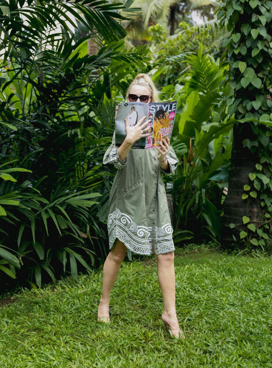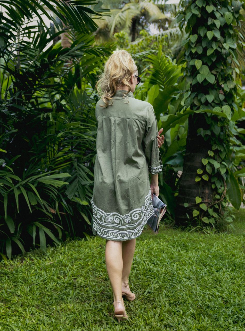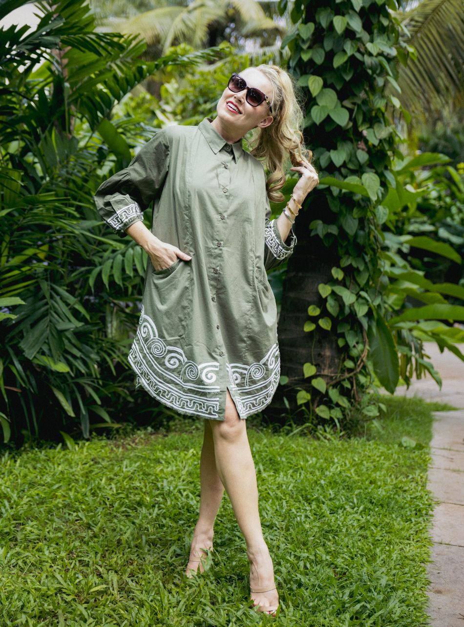 Computerise embroidery knee length GREEN APPLE shirt dress